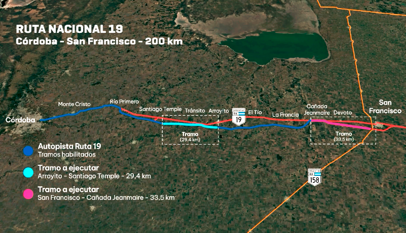 En el año 2017 comenzó a construirse la nueva autopista Ruta Nacional 19 entre las ciudades de Córdoba y San Francisco, en Provincia de Córdoba. La Ruta Nacional 19 atraviesa a las provincias de Córdoba y Santa Fe, conectando en sus extremos a sus 2 ciudades capitales. En Provincia de Santa Fe la RN 19 ya es autovía, mientras que en la Provincia de Córdoba todavía se encuentra en construcción lo que será la nueva autopista Córdoba – San Francisco. En el año 2019 se habilitó el primer tramo de esta nueva autopista. Luego en el año 2021 se habilitaron otros 2 nuevos tramos. En el mes de Abril de este año 2025 se licitaron las obras que permitirán finalizar con los últimos 2 tramos de esta nueva autopista. Hace unos días fueron adjudicados los trabajos a las empresas constructoras que salieron seleccionadas mediante la licitación recientemente realizada.