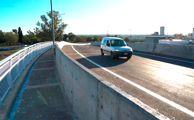 Finalmente el nuevo alto nivel fue habilitado al tránsito el día Miércoles 15 de Abril de este año 2026. A la nueva infraestructura vial también se le incorporó una nueva pasarela peatonal la cual posibilita a los vecinos de la zona el cruce de la autovía en altura y de forma segura. A continuación veremos imágenes correspondientes al día 16 de Abril de este año 2026, donde se puede observar el paso de los vehículos por esta nueva infraestructura.