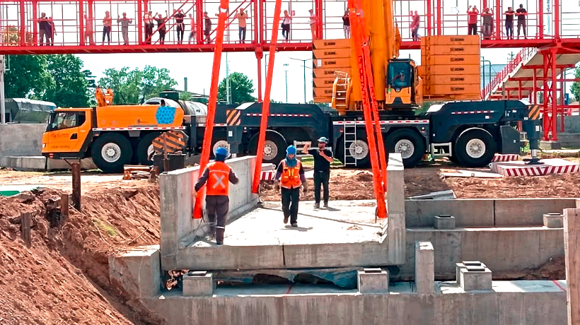 Como se mencionó anteriormente las obras fueron retomadas en el mes de Septiembre de este año 2025. A continuación veremos imágenes pertenecientes a dicho mes, donde se puede observar el actual avance de los trabajos. En la zona trabajan 2 grúas torre de gran tamaño que permitirán montar a los 3 nuevos puentes que conformarán al nuevo paso bajo nivel de la ciudad de Junín.